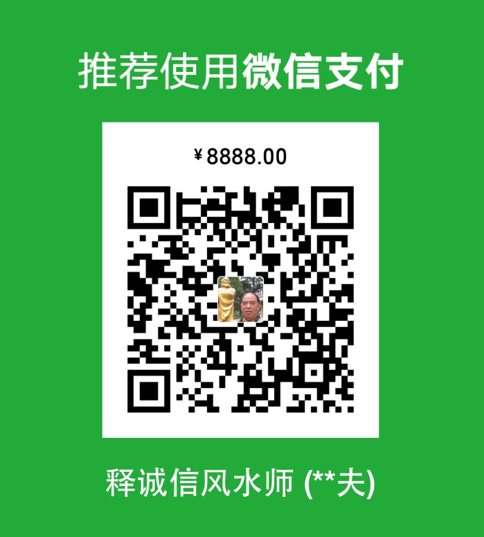 长按下面二维码转账,尽早与风水大师释诚信结缘,帮助您解决风水疑难问题,或者为您答疑解惑均可!