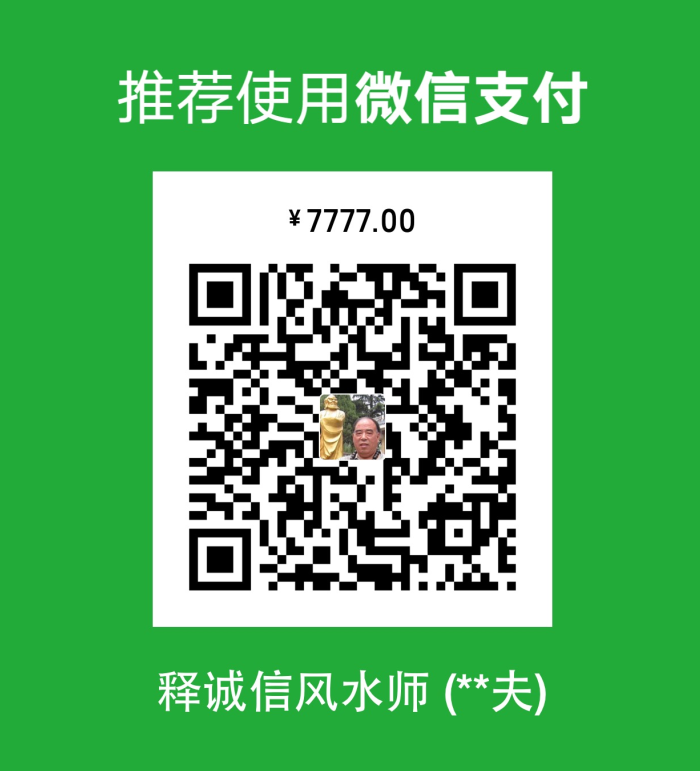 长按下面二维码转账,尽早与风水大师释诚信结缘,帮助您解决风水疑难问题,或者为您答疑解惑均可!